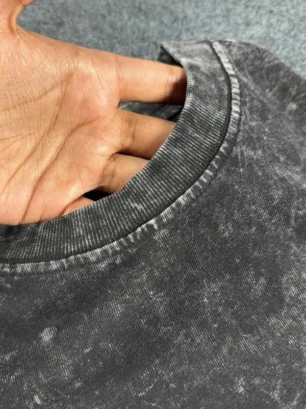 Made from 95% cotton and 5% spandex blend acid wash fabric (200+ GSM). Soft, breathable, and perfect for everyday wear.